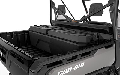 Rider using a LinQ Storage box on his Can-Am Ryker 3-wheel vehicle