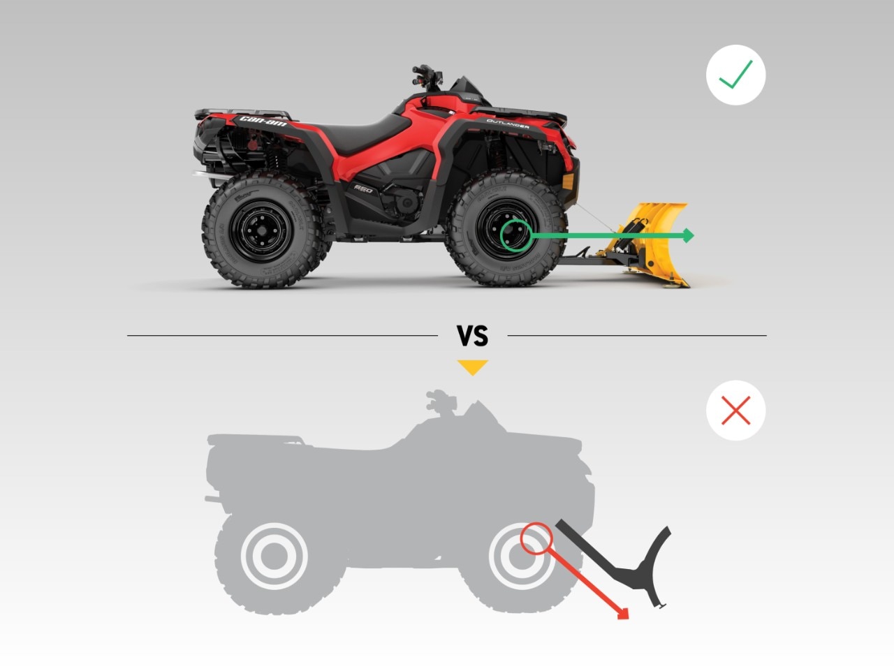 Attachable in four easy steps, the Can-Am ProMount plow system is the fastest, easiest way to start plowing and get the job done —minimal effort for maximum result.