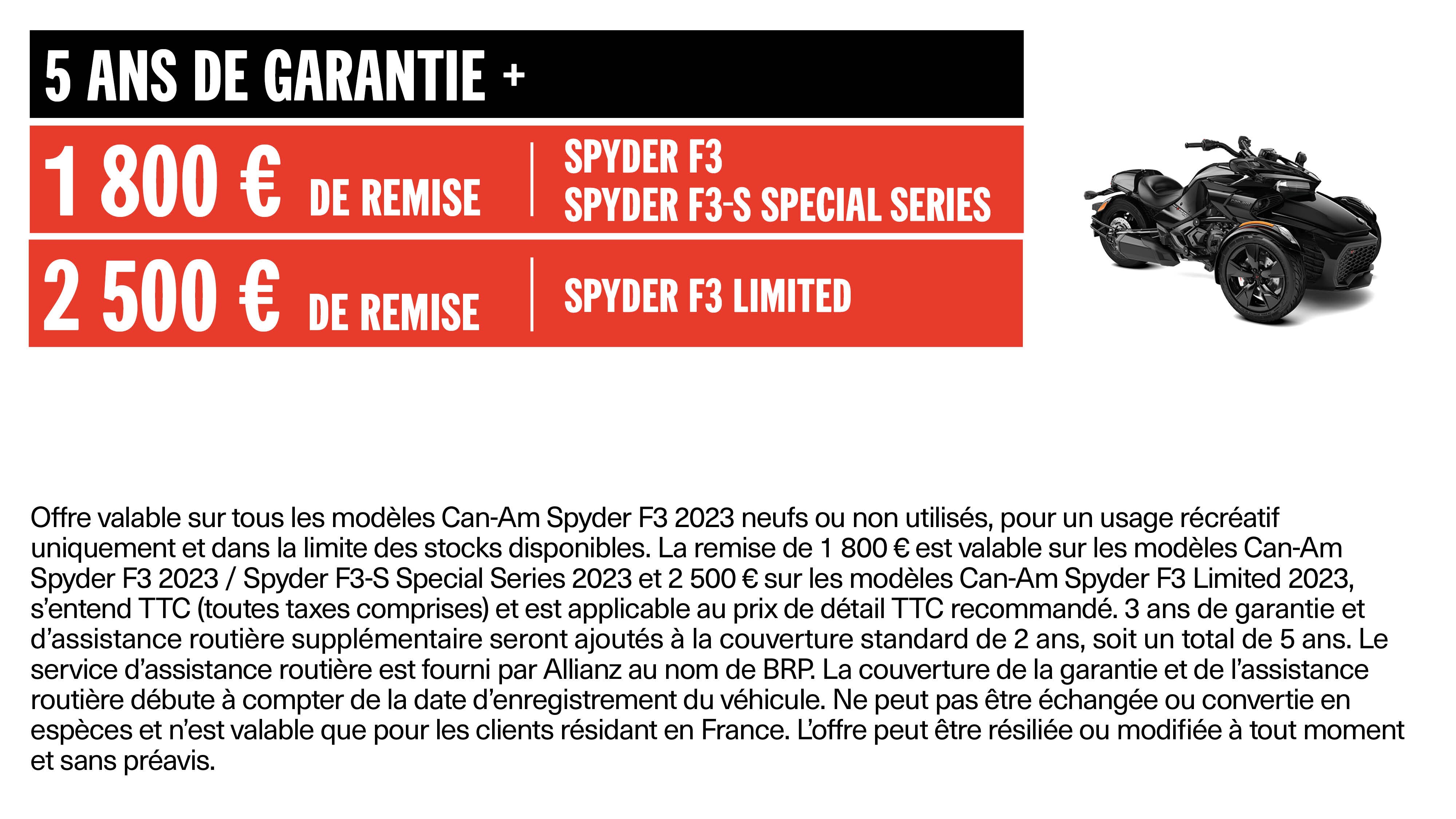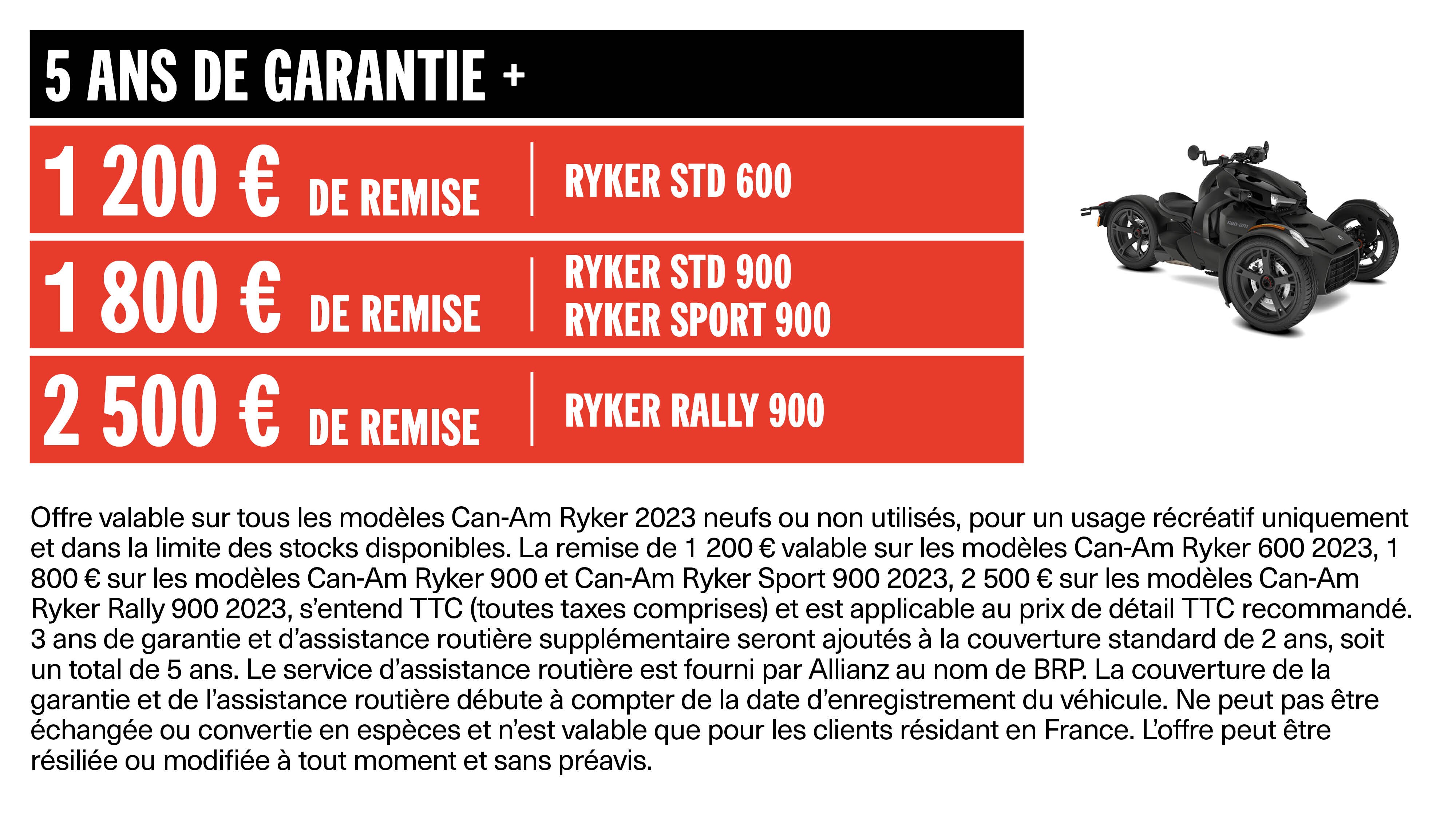 Jusqu'à 2 500 € de réduction et jusqu'à 5 ans de garantie sur votre nouveau Can-Am