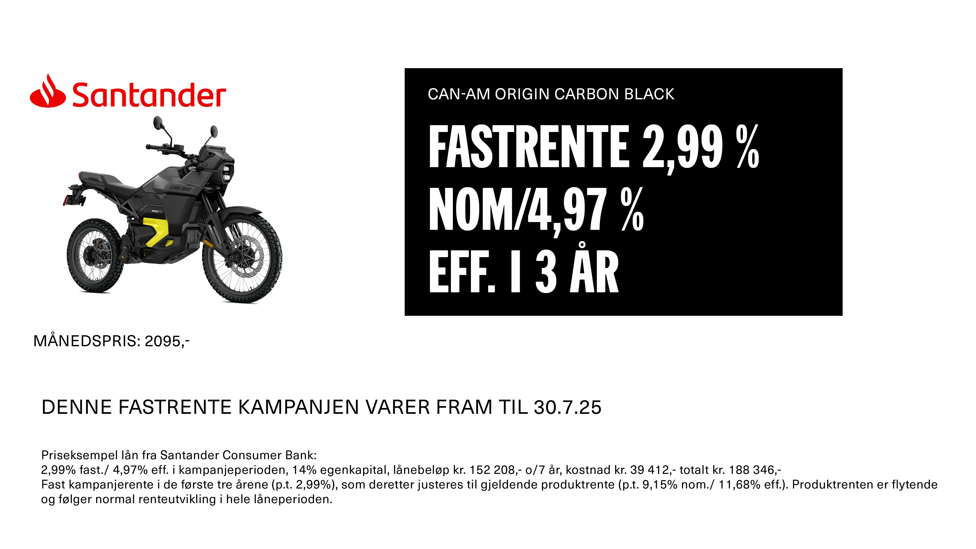 Our financing partner offers options designed to make owning a new Can-Am 2-wheel electric motorcycle or 3-wheel vehicle affordable and convenient. Use the information below to see how you can get the vehicle of your dreams.